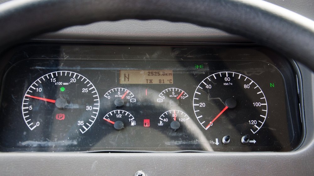 Теперь я только вскользь замечу, что Курсор смеётся в лицо конкурентам двухконтурной пневматической тормозной системой с ABS и ASR и дисковыми механизмами на всех колёсах, и мы перейдём на рабочее место водителя.