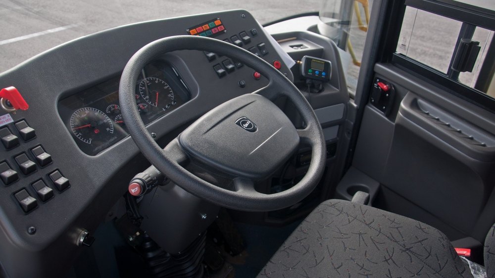 Автомат просто прекрасно работает в паре с ярославским мотором. Переключения происходят в самый нужный момент, очень предсказуемо и нежно. Вообще сидеть и рулить удобно, тут всё радует. В движении автобус сочетает и плавность, и какую-то приятную собранность и точность. Особенно должна понравиться возможность тормозить двигателем практически так же, как на машине с механической коробкой: это поможет хорошо сэкономить на ресурсе тормозных колодок.