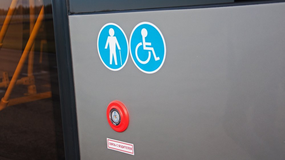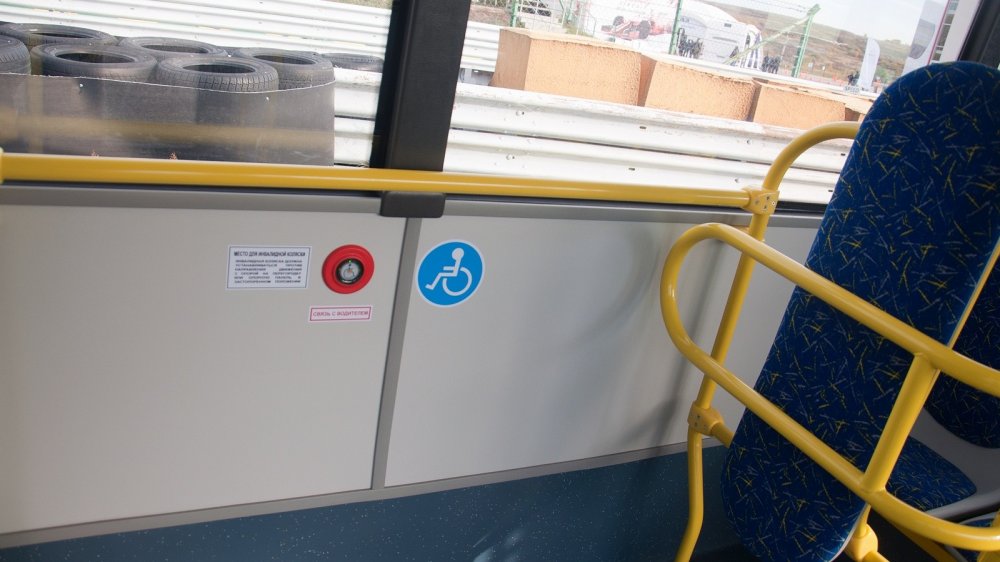Вообще тут очень трепетно отнеслись к удобству для пассажиров. Особенно — для маломобильной группы населения. Заметно это уже от входа: рядом с дверью есть даже кнопка вызова. Правда, я плохо себе представляю, чтобы водители или кондукторы выбегали по вызову человека на коляске, но техническая возможность их позвать есть. Далее по низкому полу можно проехать к площадке в салоне, предназначенной для коляски. И там тоже есть кнопки вызова и даже упорная панель. Продуман этот момент хорошо, хочется даже похвалить создателей этой доступной среды. Причём искренне. Не знаю, насколько у нас развито общество, чтобы помочь проехать инвалиду до этого места (или даже просто в час-пик попасть в автобус), но техника для этого развилась достаточно.