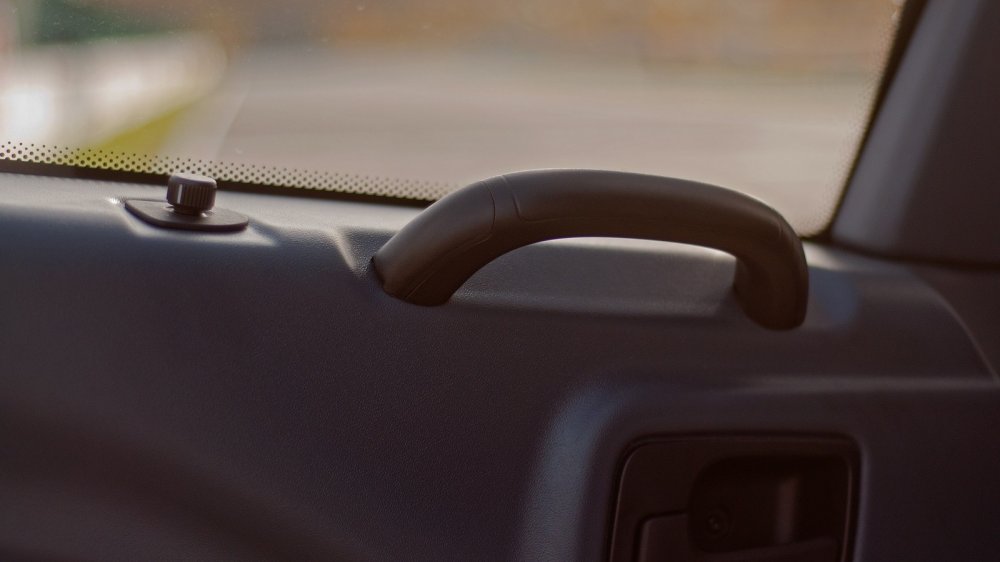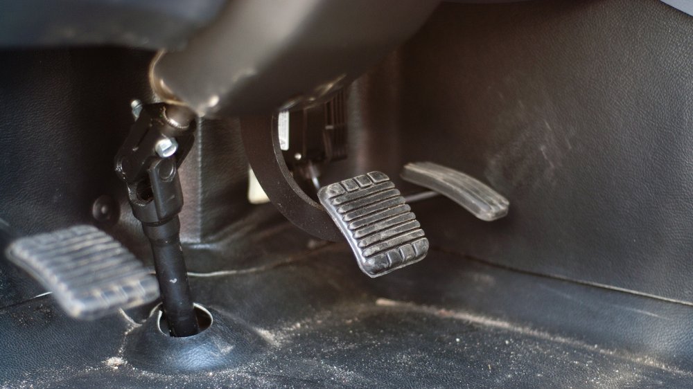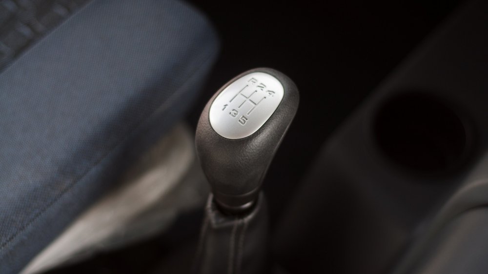Теперь снимаем машину со стояночного тормоза. Его рычажок стоит как раз под правой рукой, даже искать не пришлось. Выжимаем сцепление и включаем передачу.