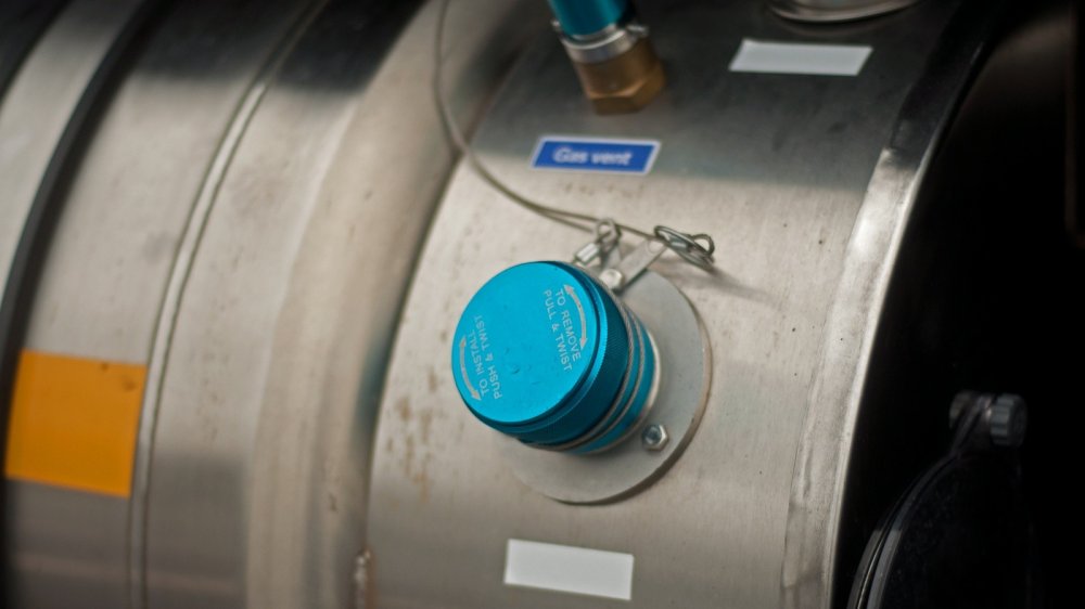 Девять баллонов общим объёмом 892 л со сжатым газом тут увидеть трудно: они стоят за кабиной так, чтобы не снижать геометрическую проходимость Урала. Согласитесь, зачем кому-то нужен Урал, который не имеет своего главного козыря — убойной проходимости? А вот красивый блестящий бак сбоку — это как раз криогенный бак для сжиженного газа. Его объём — 450 литров. Очевидно, что жидкий газ — это ещё не совсем топливо: тяжело зажечь что-то, температура чего ниже 160 градусов Цельсия, а сжиженный газ имеет как раз такую температуру (иначе он не может стать сжиженным). Поэтому сначала сжиженный газ переводят в газообразное состояние, а уже потом подают в двигатель. Причём из 450 литров сжиженного газа получается 240 кубометров газа. Что же в этом хорошего?