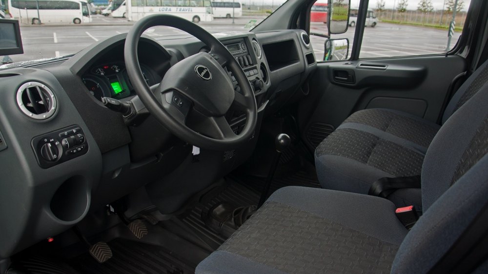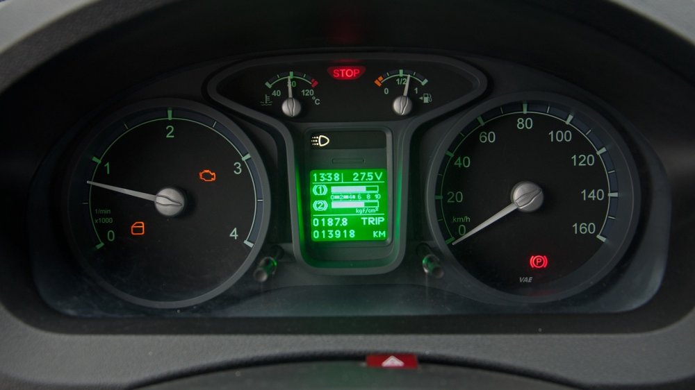 Приборная панель тоже уже хорошо знакома по Газелям и Газонам. И опять радуемся изящному исполнению индикации показаний манометров контуров тормозной системы. Многие ещё помнят, что некогда эти манометры были важнейшими приборами в грузовиках с пневматическими тормозами. Например, на ЗиЛ-131.