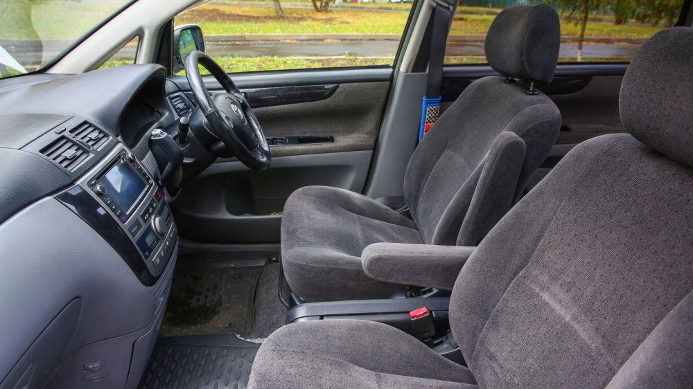 У передних кресел – развитая боковая поддержка, да и сами они держат превосходно, а велюровая отделка создает миленький домашний уют. С учетом наличия в семье маленьких детей Алексей принципиально разыскивал Ипсум с темным немарким салоном.