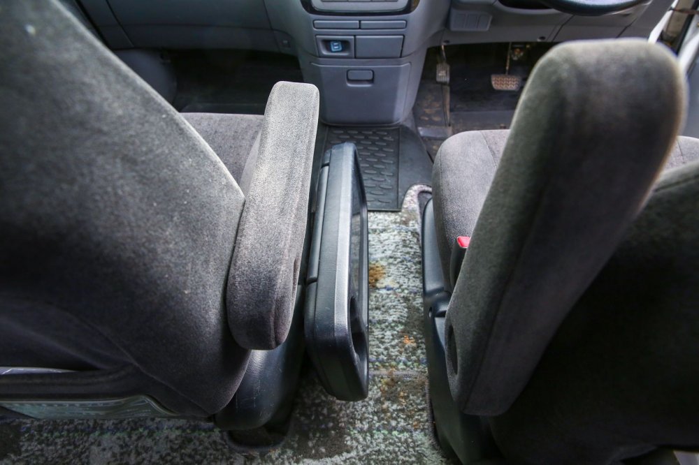 Между передними креслами находится небольшой столик, но он складывается, позволяя без труда пройти на второй ряд при необходимости: