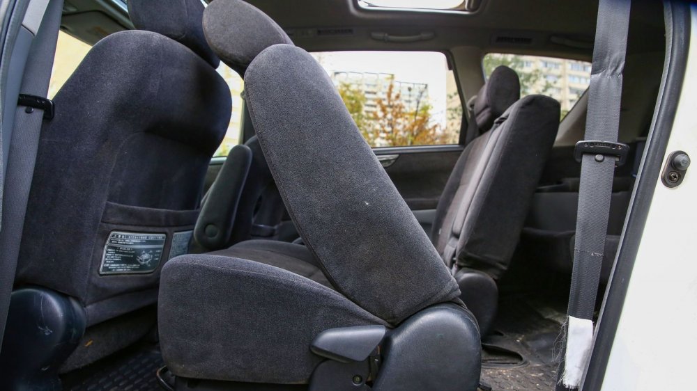 Из-за колесных арок задний («тещин») диван поуже и способен принять двоих, но по удобству – практически такой же, как и средний. Для выхода с третьего ряда есть педальки – при их нажатии спинки среднего ряда откидываются вперед.