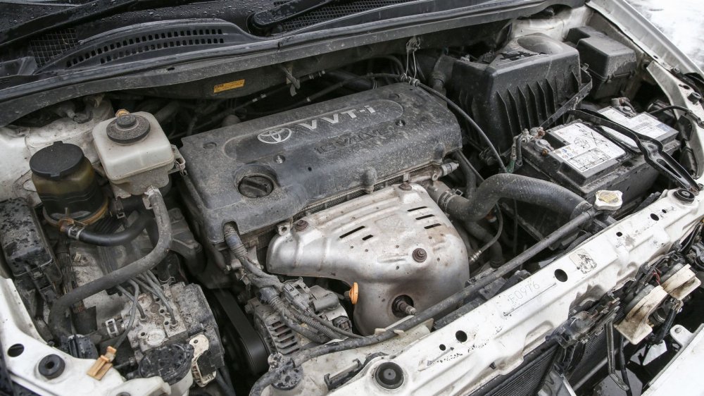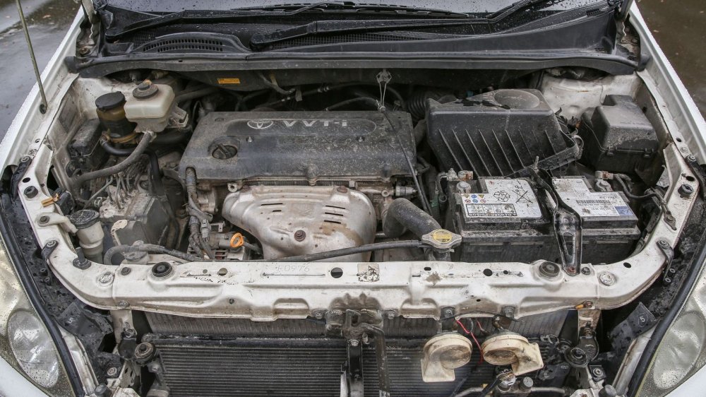 Двигатель этого Ипсума – старый и надежный 2AZ-FE, 4-цилиндровый атмосферный мотор объемом 2,4 литра и мощностью 160 сил. Это цепной агрегат еще с тросовым приводом дросселя (на рестайле в 2003 году он стал электронным) и с системой фазорегулировки VVT-i. Нынешний владелец приобретал машину с пробегом 216 000 км, однако совершенно спокойно предполагает, что тысяч на 50-60 пробег был скручен для пущей привлекательности. При этом движок отлично тянет и от замены до замены в 10-тысячном интервале долива масла не требует. Автоматическая коробка – простой старый 4-ступенчатый гидротрансформаторный автомат. Привод в нормальном режиме – передний, однако нажатием кнопки активируется электронная муфта в редукторе заднего моста, и часть момента (до 50%) перебрасывается на корму.