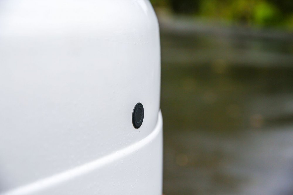 А вот датчики парктроников в переднем и заднем бамперах – странный дизайнерско-технологический казус. На белом кузове датчики – черные, и это штатное заводское решение. Смотрится, конечно, не очень…