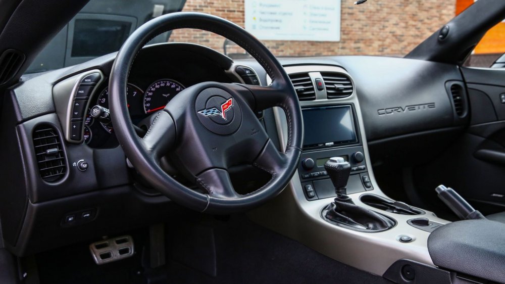 Салон машины достаточно прост, дизайнерская фантазия на нем не отрывалась... Симпатично вписавшийся в консоль семидюймовый дисплей мультимедийной системы – нештатный аксессуар, на его месте изначально была простенькая базовая «магнитола». Плюс в салоне можно без труда обнаружить признаки экономии, за которую диванные критики просто утопили бы бюджетный седан, хотя 405-сильный Корвет – не осмелятся... На деле же это не столько экономия, сколько традиционный американский пофигизм. На часто используемых органах управления и панельках отделки начинает царапаться и стираться краска «под металл», на стыках панелей просматриваются изрядные и не всегда симметричные щели, пластик поскрипывает…