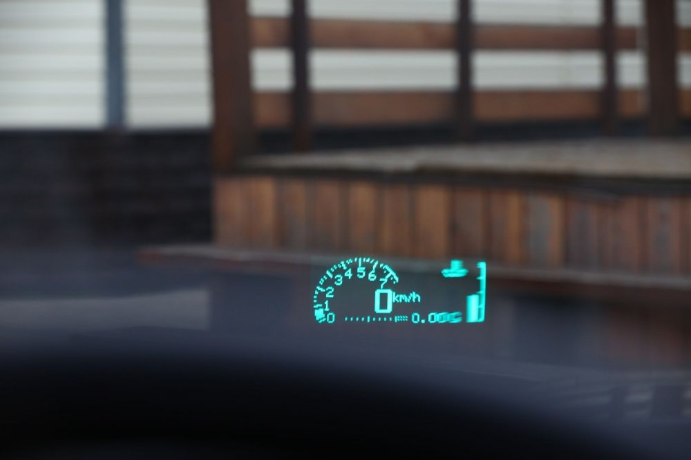 Спидометр размечен не в километрах или милях, а просто в цифрах. Если в меню выставлены километры, значит, стрелка показывает километры, если мили – соответственно мили. Плюс в цифровом виде реальная скорость транслируется на лобовое стекло с помощью проектора.