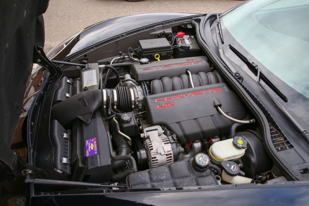Этот экземпляр C6 – один из первых в своем поколении, поэтому, разумеется, дорестайлинговый (рестайл впоследствии существенно изменил мотор и трансмиссию). У нашего Корвета под капотом расположен немолодой 8-цилиндровый 6-литровый V-образник LS2 и автоматическая 4-ступенчатая коробка 4L65 с усиленным кованым валом. Хотя нет, коробка, разумеется, находится не под капотом, а… под багажником, поскольку Корвет эксплуатирует схему заднего привода с «трансакселем», в которой КП совмещена с редуктором главной передачи. Раз машина заднеприводная, то и главная передача расположена посередине заднего моста. И коробка, соответственно, находится там же… Двигатель соединен с КП мощной трубой, проходящей вдоль под днищем, а внутри трубы вращается карданный вал, в свою очередь идеально защищенный от пыли и влаги. Такая компоновка на Корвете дает отличную спортивную развесовку, практически 50:50, и усиление жесткости кузова.