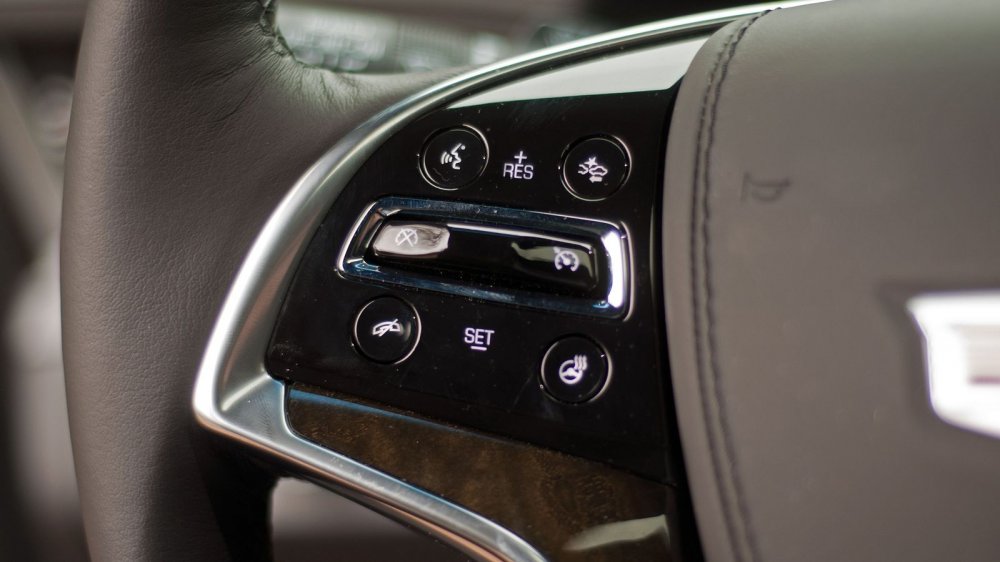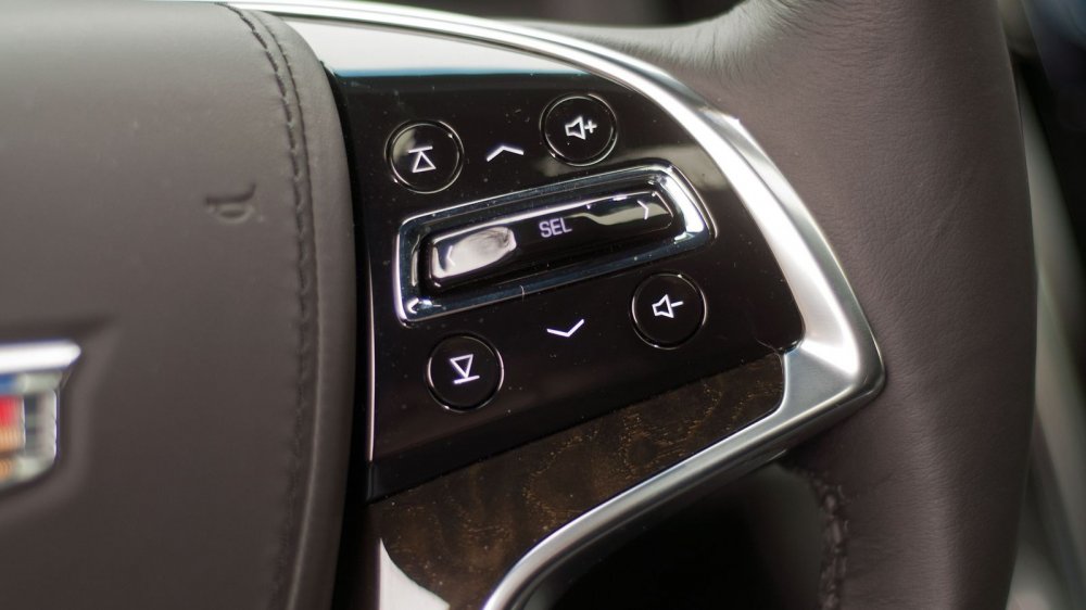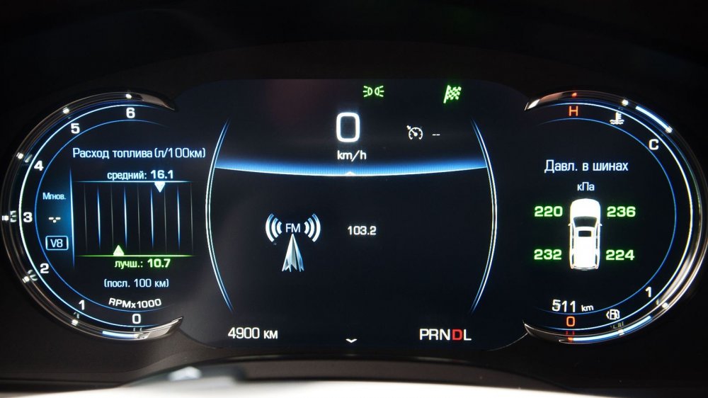 В целом интерьер внедорожника остался американским: очень просторно, но при этом удобно и уютно. Сердце американофила обрадуют и рычаг АКП на рулевой колонке, и руль довольно большого диаметра, и далеко не тесные кресла. Впрочем, если любите сильно выраженную боковую поддержку, есть выход: она регулируется в достаточно широком диапазоне. При желании можно сжать себя боковинами кресла очень даже чувствительно. Ну или сделать себе массаж – кресла это тоже умеют. Вдобавок Эскалейд отличается таким же царским диапазоном регулировок рулевой колонки. А если добавить сюда ещё и регулировку положения педального узла, то становится вообще шикарно. Игра всеми этими приводами может заставить залипнуть на долгие минуты. А потом начнётся игра 18,3-дюймовой электронной приборной панелью, имеющей несколько вариантов отображения информации. Качество картинки на ней очень высокое, хотя, например, давление в шинах упорно отображается в кПа, а не в атмосферах. Впрочем, это не столь существенно: перевод одной величины в другую с небольшой погрешностью очень прост.