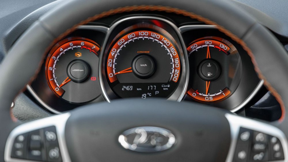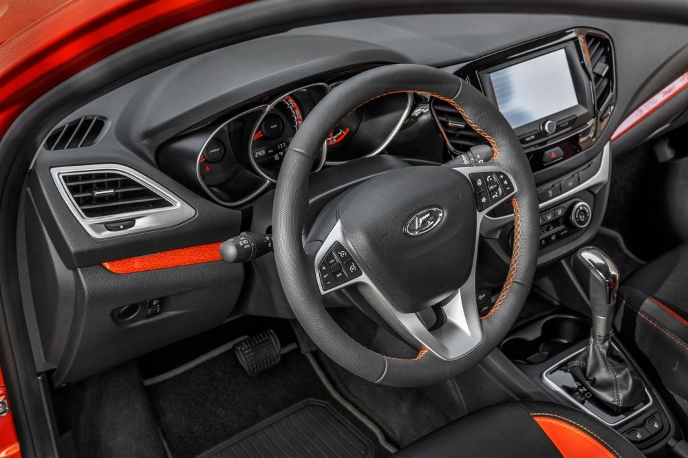 Но и этим нововведения, перекочевавшие на Vesta, не ограничили. Теперь новинку можно будет опознать по зеркалам оригинального дизайна и по антенне-плавнику. Кроме того, появилась функция освещения поворотов противотуманными фарами и даже бескаркасные щётки, доступные в базовой комплектации Classic. В самой дорогой комплектации Exclusive у машины складываются зеркала при запирании дверей. В интерьере тоже не без модернизаций: чёрный потолок, новые подстаканники и обогреваемый руль, правда, не по всей окружности обода, а лишь в местах профессионального хвата и в сегменте «на шесть часов». Селектор управления вариатором – от Renault Fluence, а не такой же, как на Xray. К слову, щётки – что каркасные, что бескаркасные – везут из Турции: удивительно, но отечественные поставщики не сдюжили. Какая тут локализация вариатора…
