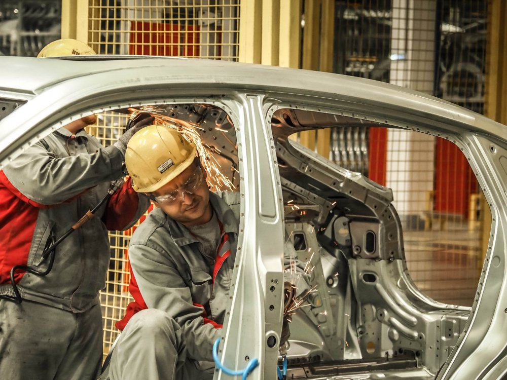 На штамповочном участке работа пока выглядит так: все операции выполняются в автоматическом режиме, но после того, как детали сходят с линии, они попадают в руки сотрудников, которые по определённому алгоритму проверяют их на наличие дефектов. В это время линию переналаживают под выпуск другого наименования. То же самое – на сварке: сначала мелкие элементы вручную или роботом сваривают в подсборки и передают их на окончательную сварку, где задействованы только роботы. Затем кузова поступают в окрасочный цех, где людей вообще нет. А вот на сборке без ручного труда снова не обойтись: единственный робот используется только на операции вклейки стекол.