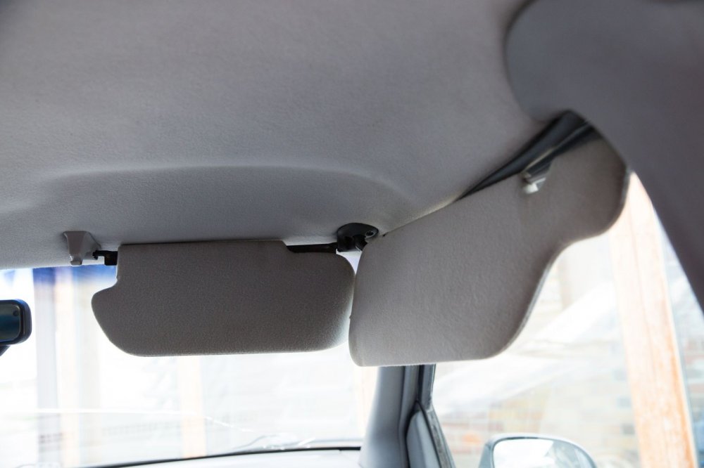 Противосолнечные козырьки – сдвоенные, позволяющие прикрыться от лучей и спереди, сбоку.