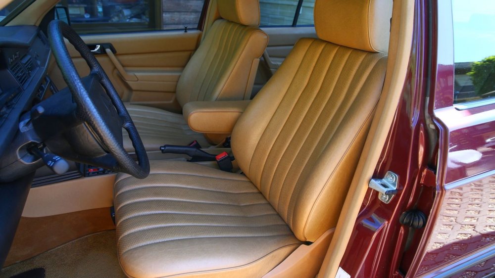 Бежевый салон превосходно гармонирует с теплым окрасом кузова. А какой там запах – м-м-м… Удивительно, но за 32 года аромат новой машины не только не выветрился – такое ощущение, что даже усилился! Назовем это «эффектом выдержки коньяка», хотя на самом деле это лишь испарение разных летучих веществ – ксилолов, толуолов, бензолов, альдегидов и прочей химии, создающей столь милый носу истинного автомобилиста купаж.