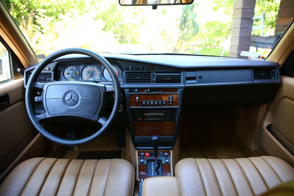 С сиденья водителя открывается вид на безукоризненную штутгартскую классику дизайна оформления органов управления и приборной панели, многие элементы которой без существенных изменений десятилетиями кочевали с модели на модель, в том числе и долгие годы после снятия 190-го с производства.