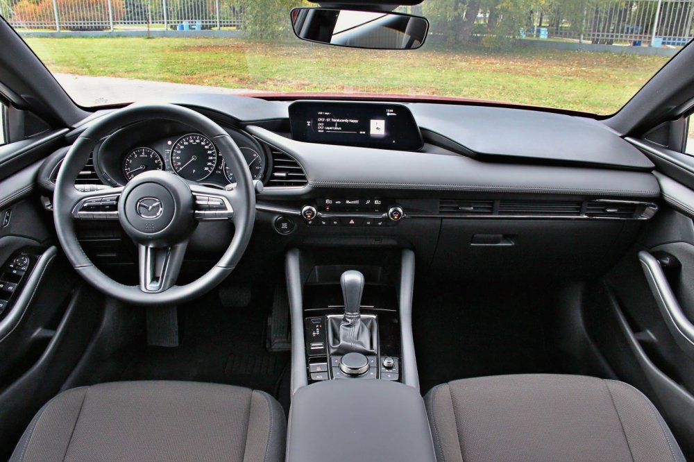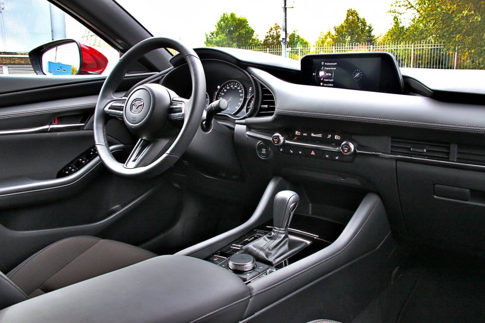 Но самая странная и неприятная комплектационная особенность тестовой Мазды – это отсутствие датчиков парковки и камеры заднего вида (они появляются лишь в самой дорогой комплектации Supreme). Без них параллельная парковка Мазды превращается в мучение: из-за купейной кормы и толстенных задних стоек адекватно оценить обстановку за машиной практически невозможно, а стекло багажной двери очень маленькое. С обзорностью перед автомобилем проблем, к счастью, нет.