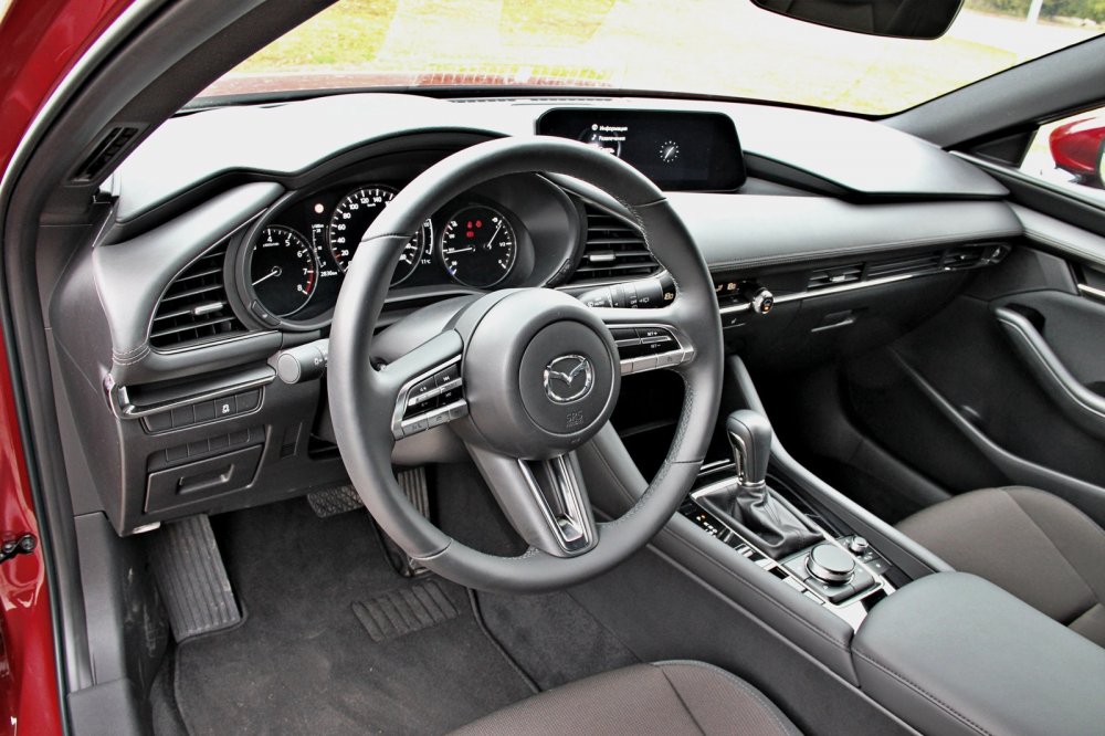 Она точна, послушна, терпелива и невероятно тиха – это самая тихая Mazda из всех, на которых я когда-либо ездил, включая флагманский кроссовер CX-9. Когда под колёсами хороший асфальт, трудно представить себе более собранный и точно настроенный автомобиль С-класса. Даже «французы», которых я люблю за их обволакивающую мягкость в сочетании с отточенным шасси, не дарят на скорости такого чувства уверенности и гармонии, как Mazda 3 – и это, по-моему, самая веская из её заявок на попадание премиум-сегмент.