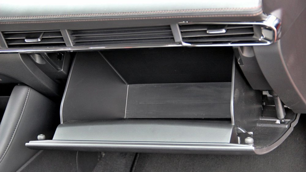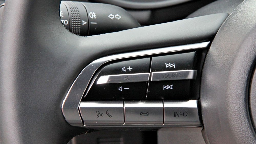 Простенькое на вид тканевое кресло Мазды на поверку оказалось очень удобным: оно отлично распределяет нагрузку на спину и ноги, несмотря на отсутствие регулировки поясничного подпора. Вместо последней Mazda предлагает механическую регулировку угла наклона подушки, которую лично я считаю гораздо более полезной, нежели настаиваемый валик за спиной.