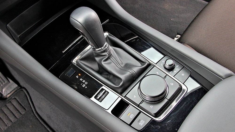 Меломанам в Мазде также понравится возможность быстрой навигации по трекам с помощью ротационно-нажимной шайбы на центральной консоли – она позволяет практически не отрывать взгляд от дороги. Справа от шайбы находится маленький регулятор громкости, пользоваться которым гораздо удобнее, чем кнопками на руле – он буквально всегда под рукой, опирающейся на центральный подлокотник. А вот дополнительный UBS-порт (основной – под крышкой подлокотника) под блоком климат-контроля для музыки не годится: при тряске флешка теряет контакт, и воспроизведение прерывается – ещё один минус слишком жёсткой подвески.