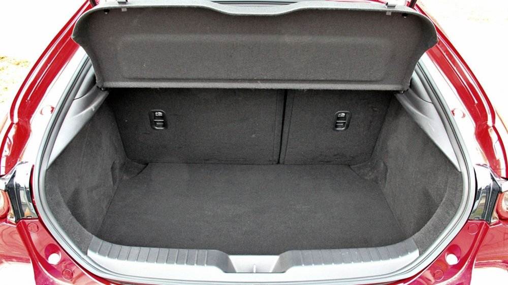 Задние места однозначно удобнее в Kia: запас пространства больше по всем направлениям, есть двухступенчатый подогрев и индивидуальные воздуховоды по центру. Mazda 3 с позиции заднего пассажира не дотягивает до стандартов С-класса, здесь тесно и темно, и я бы вообще рассматривал «тройку» как четырёхдверное купе с посадочной формулой 2+2 – так было бы честнее и правильнее. Багажник у Мазды на 100 л меньше, чем у Kia, но возможности трансформации идентичные, а под полом – лишь узенькая запаска-докатка.