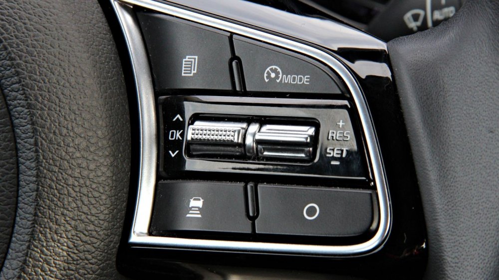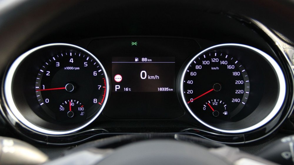 У Kia же всё наоборот: подушка по углу наклона не регулируется, а поясничный подпор настраивается сразу в двух плоскостях посредством электропривода. Итог – боли в спине уже после полутора часов езды за рулём. Из-за слишком сильно оттопыренного верхнего края подушки мне приходится сидеть в Kia ниже, чем хотелось бы. При этом верхние сегменты шкал спидометра и тахометра всё равно перекрываются ободом руля.