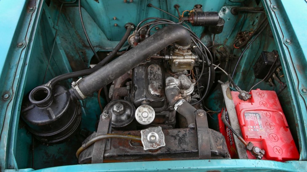 Под капотом Москвича находится 1,4-литровый двигатель с однокамерным карбюратором К-125Д. Мотор выдает скромные 45 сил при 4500 об/мин, и его выхлоп идет через тоненький глушитель, который можно заткнуть указательным пальцем! Впрочем, для бюджетной малолитражки той эпохи подобные характеристики были в порядке вещей. Скажем больше – этот мотор пришел на смену 35-сильному, так что прогресс налицо!