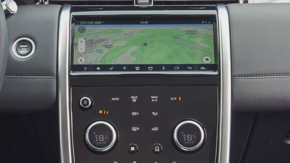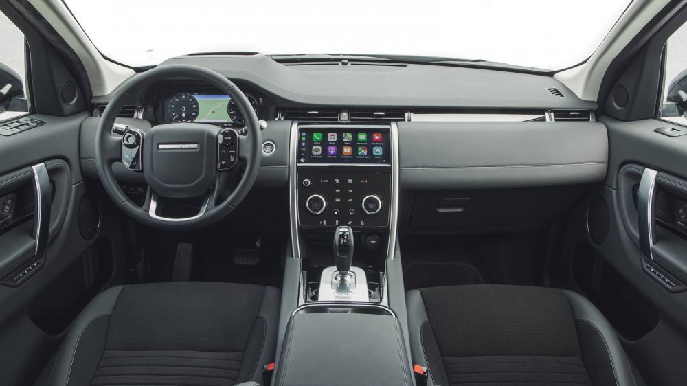 Как мы уже знаем, интерьер требовал обновления куда больше экстерьера: россыпь чёрных кнопок на чёрной панели выглядела старомодно. Однако и то, что получилось в результате рестайлинга, оценить можно неоднозначно: передняя панель сохранила доминирующие горизонтальные линии, но сменила физические клавиши на сенсорные. Руль и оформление пользовательского интерфейса здесь «общекорпоративные», вот только третьего экрана для управления климатической системой Discovery Sport не досталось – по статусу не положено. С другой стороны, ему положена беспроводная зарядка, которая недоступна ни за какие деньги для дорогого и авангардного Jaguar I-Pace, – в общем, чёткой логики здесь искать не стоит.