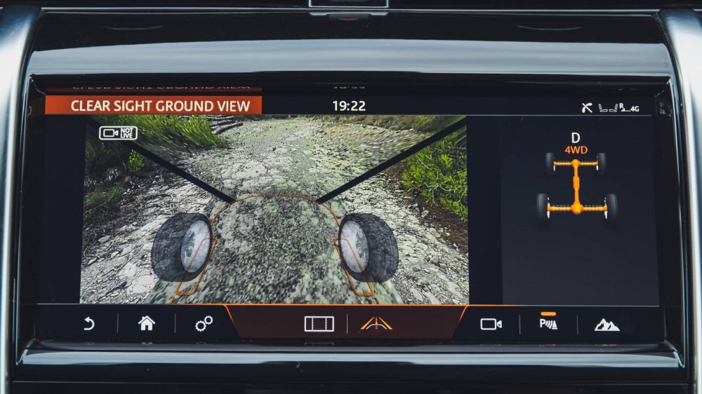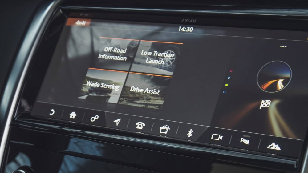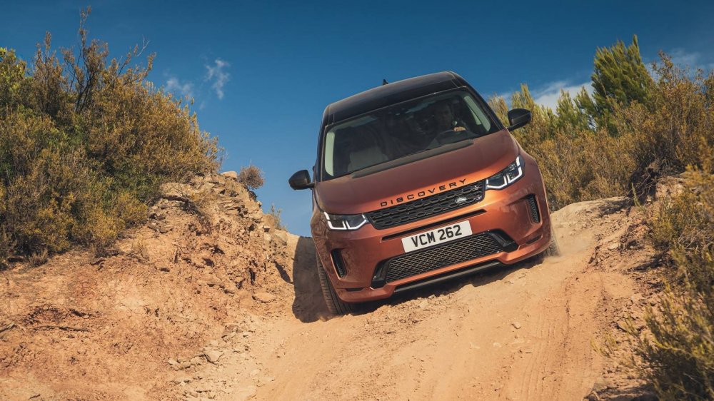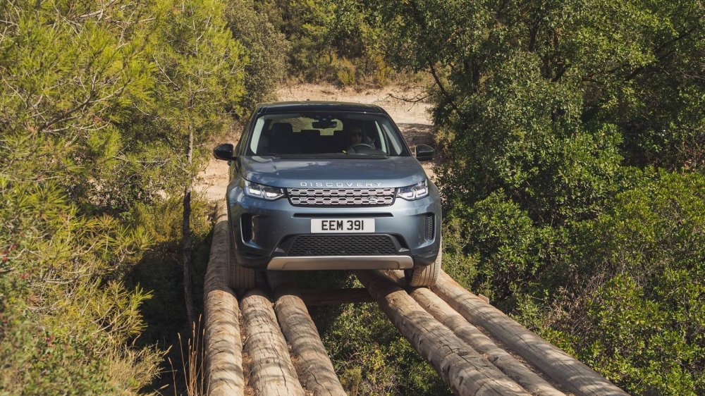 Discovery готов показать лёгкие внедорожные трюки даже тем, кто не будет съезжать с асфальта: к примеру, стоя на уклоне на тормозах, можно продавить педаль сильнее и увидеть на приборке надпись Hold, которая означает, что тормоз можно отпустить. В городе это просто удобная фишка, а на косогоре – возможность, например, высунуться из окна и не укатиться вниз. Хотя, строго говоря, у Discovery Sport столько камер кругового обзора, что высовываться не придётся: помимо камер в зеркалах и на носу, здесь есть целых две камеры сзади: нижняя служит для парковки и обзора, а верхняя, с водоотталкивающим покрытием, спрятана в плавнике антенны и работает как широкоугольное зеркало заднего вида: на само зеркало в салоне можно вывести картинку с этой камеры. Если же нужно отслеживать, что творится под колёсами, можно включить режим «прозрачного капота»: в этом случае передняя и боковые камеры запоминают картинку при движении и склеивают её в единый кадр, транслируя происходящее на экран в салоне.