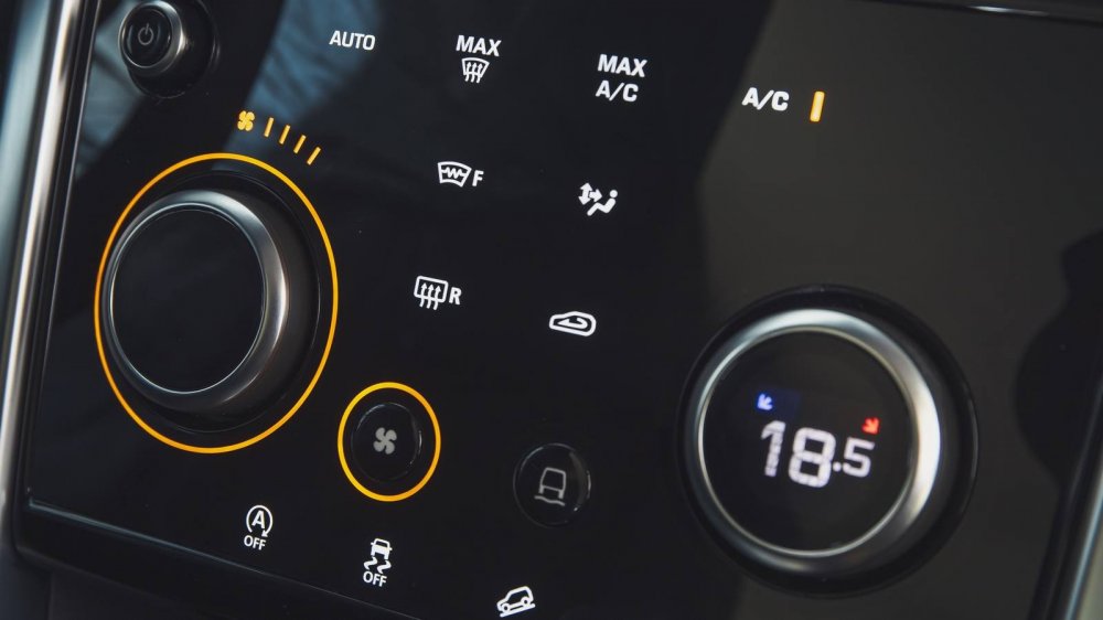 А вот с нижней сенсорной панелью всё не так однозначно. С одной стороны, фирменная схема с удобными поворотно-нажимными регуляторами, которые могут управлять температурой, интенсивностью обдува, обогревом и вентиляцией сидений, а заодно и внедорожными режимами, удобна. В сами регуляторы вписаны монохромные экраны, отображающие настройки климата, а прочее выводится вокруг них в зависимости от выбранного режима управления. Но вот все прочие клавиши вроде обогревов стёкол, интенсивного охлаждения салона, управления системой стоп-старт и так далее – сенсорные, и попасть в нужную зону на ходу довольно сложно, а неосторожный «свайп» рукой способен вызвать настоящую вакханалию. Опуская очевидные эксплуатационные недостатки вроде быстрой загрязняемости большого чёрного глянцевого полотна, порадуемся хотя бы тому, что клавиши контрастные и хорошо читаются даже днём, а оранжевая индикация включения информативна.