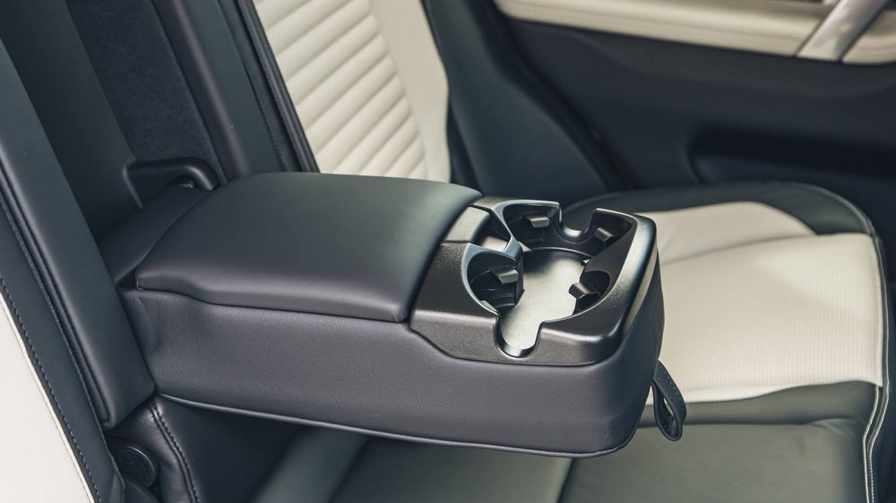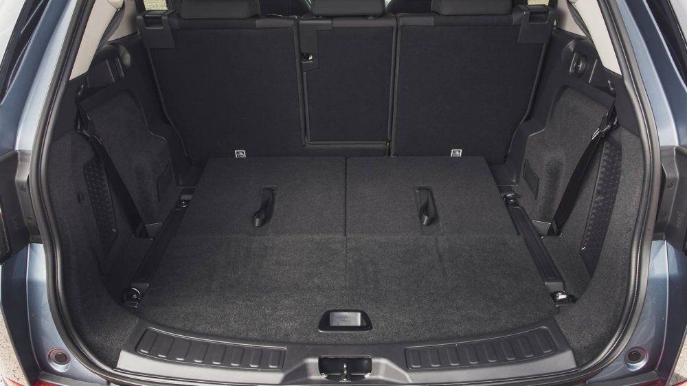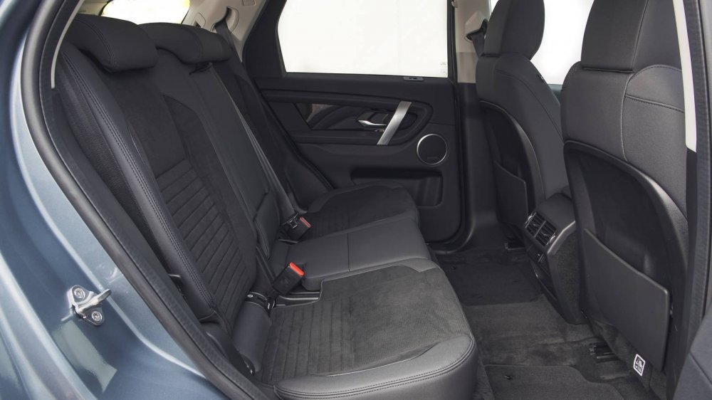 Задний ряд изменился мало: колёсная база здесь на 6 сантиметров больше, чем у Evoque, – 2 741 мм, так что пассажиры второго ряда чувствуют себя вольготно, а плоский диван вполне лоялен и к третьему седоку. Третий ряд при длине машины в 4 597 мм здесь ожидаемо скромный, но усадить на него детей вполне можно – а большего от него ждать и не стоило бы. Кстати, детям на втором ряду пригодятся зарядные порты, и в «Диско Спорт» их можно заказать до 6 штук.