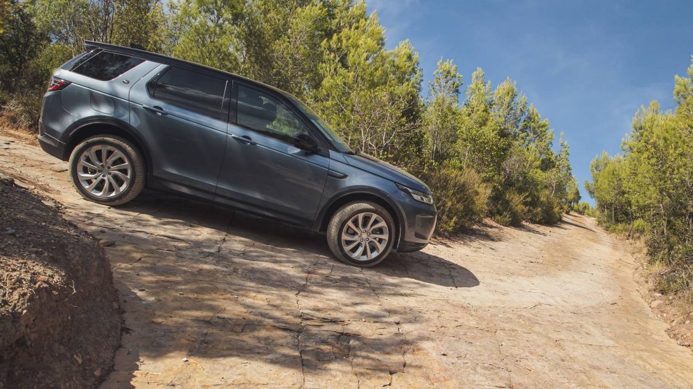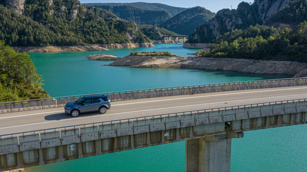 Поначалу выбор окрестностей Барселоны для места проведения тест-драйва показался непонятным: повсеместное ограничение в 50 км/ч и узкие серпантины, на которых Discovery Sport радует только в меру тяжёлым рулем с удачными настройками электроусилителя и чётким нулевым положением. Крены умеренные, асфальтовые повадки вполне типичные для некрупного кроссовера, разве что ширина почти в 2,2 метра с учётом зеркал намекает, что лучше ехать 120 км/ч по шоссе, чем разъезжаться с грузовиками на узких извилистых дорожках. На трассовых скоростях, кстати, не докучают ни шум ветра, ни звук мотора: несмотря на то что двойное остекление «Диско» не положено (его нет даже у более «статусного» Эвока), и без него шумоизоляция вполне достойная.