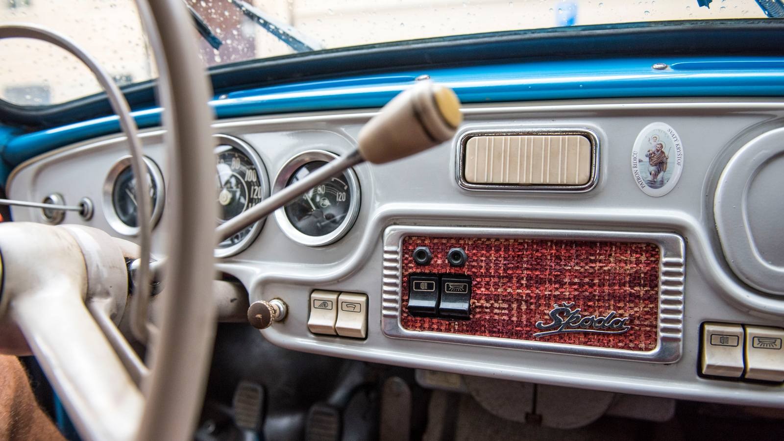 Салон Октавии — типичный для утилитарного авто: очень простой и без намеков на украшательства. Все жесткое, железное, без каких-либо «излишеств нехороших» (с). Приборная панель – простейшая: спидометр, индикатор уровня топлива и температуры. Из нетипичных для современного водителя вещей – рукоятка коробки передач на рулевой колонке и торчащий слева из приборной панели длинный штырек из толстой стальной проволоки с «пимпочкой» на конце — переключатель поворотов. Внизу в центре находится распределитель отопителя: чтобы пустить воздух в ноги, нужно открыть дверцы – одну в сторону водителя и другую в сторону пассажира.