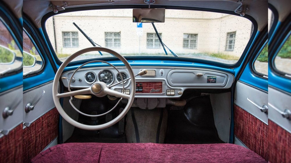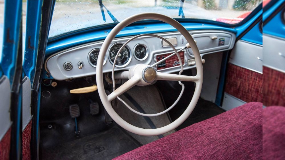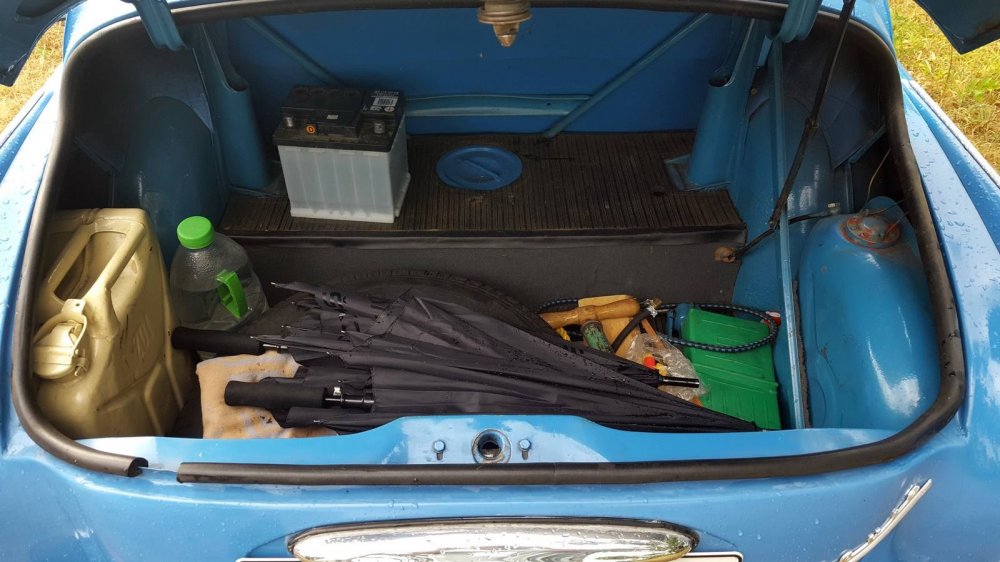 Багажник невелик (странно было бы иное!), однако в целом и не так уж мал. Что-то крупное разместить вряд ли удастся, а вот по мелочи можно натолкать барахла изрядно. Примечательно, что в правой боковой нише находится бензобак, а вот левая предназначена для идеально входящей туда стандартной 20-литровой канистры: такой плотной сети АЗС, как сегодня, в 60-е не имелось, и возить топливо с собой было нормой…