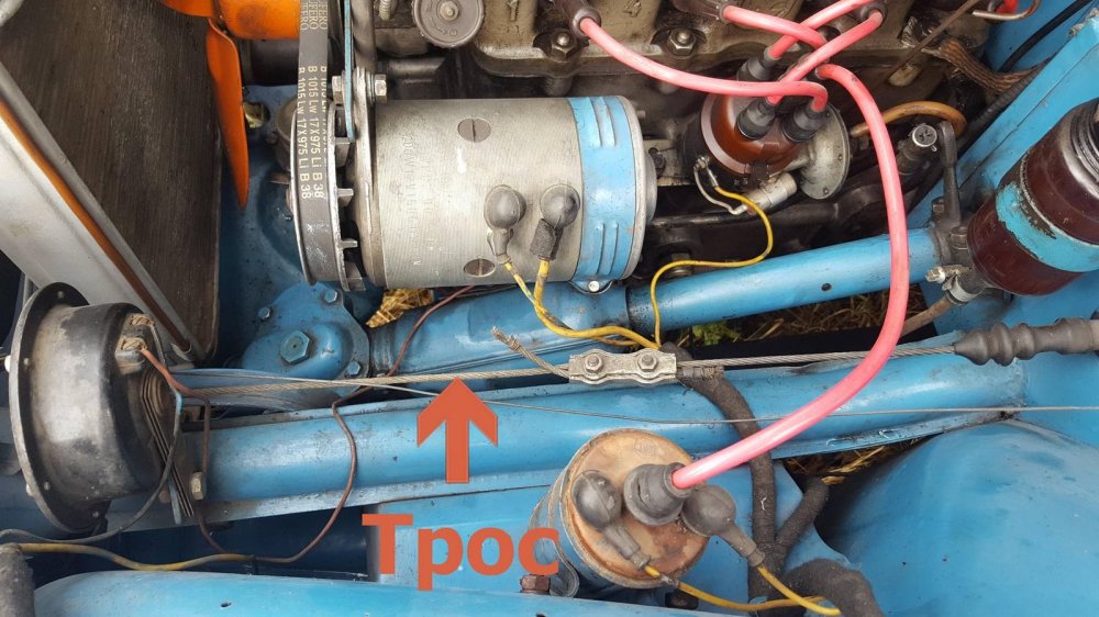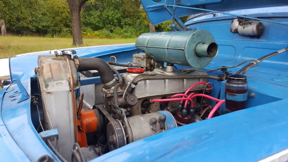 Заглянув в моторный отсек, можно заметить ряд устаревших и просто необычных технических решений… На кузов идет не привычный минус от аккумулятора, а плюс – такое нередко встречалось в те годы. Генератор вырабатывает постоянный ток (сразу, без выпрямления переменного, как на всех современных авто) и выдает скромную мощность в 200 ватт (опять же, любой современный автомобиль имеет мощность генератора 1 200-1 500 ватт). А бачок для тормозной жидкости и вовсе сделан… из стекла!