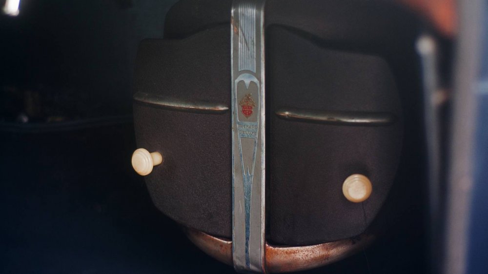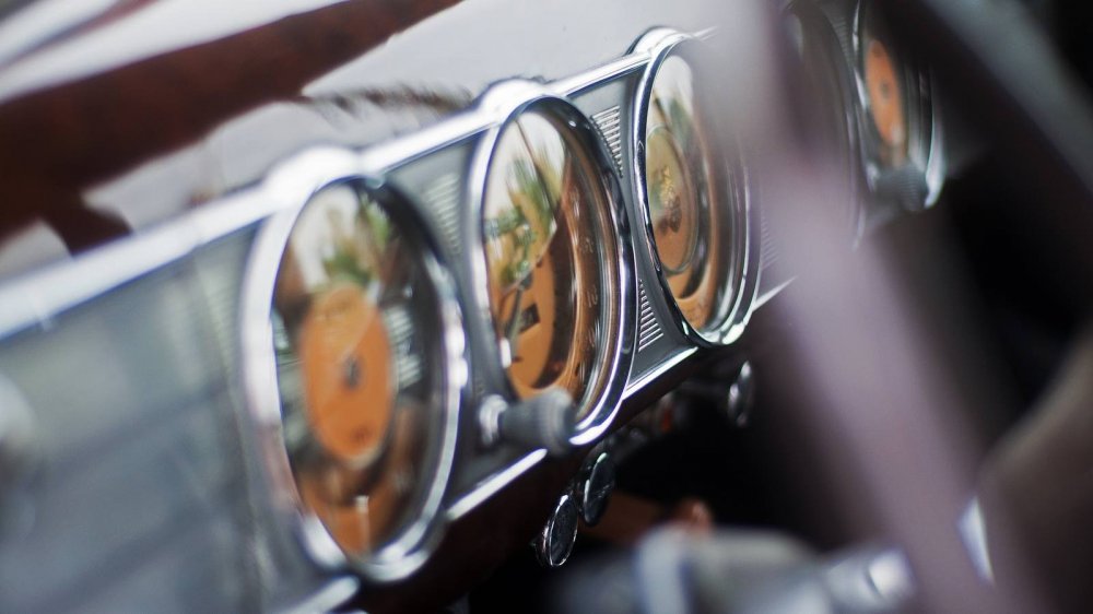 Если перед лицом водителя стоят указатели температуры охлаждающей жидкости и спидометр — это понятно. А вот справа с расположением приборов немного намудрили: самым крайним оказывается комбинированный указатель давления масла и уровня топлива, а ближе к водителю — обычные часы. Лично мне было бы удобнее, чтобы важные приборы были чуть ближе, а часы можно было бы задвинуть направо. Но мои советы опоздали лет на 80.