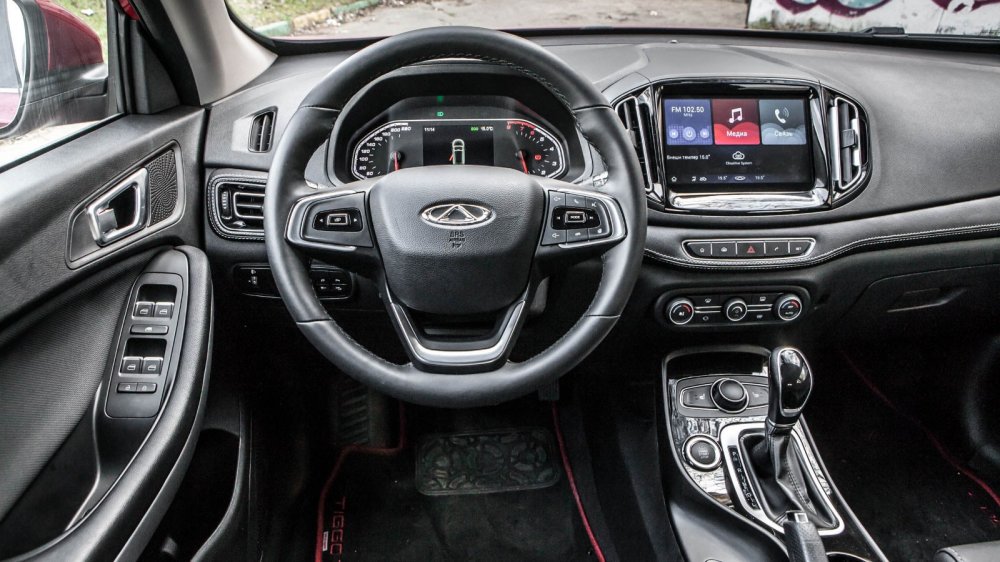 У Chery колёса задевают за арки при полном повороте руля, а при движении задним ходом со стороны вариатора раздаётся тихий, но весьма заметный свист. Дозировать тягу у Chery затруднительно, двигатель инертный, пройдёт время, пока после нажатия на педаль электроника начнёт добавлять газ. Ощущения несколько «тракторные», а возможности торможения по замедлению ступенями (в вариаторы запрограммированы фиксированные положения шкивов) весьма ограничены. Между тем, у того же Emgrand X7 они и вовсе отсутствуют! Нет, при 30 км/ч можно вручную воткнуть первую ступень, но толку от этого – никакого. Кстати, мы обычно говорим об избирательности рычага ручной коробки, а вот в приложении к Tiggo 7 ещё нужно сказать и об избирательности селектора АКП. Попасть в нужную позицию им непросто.