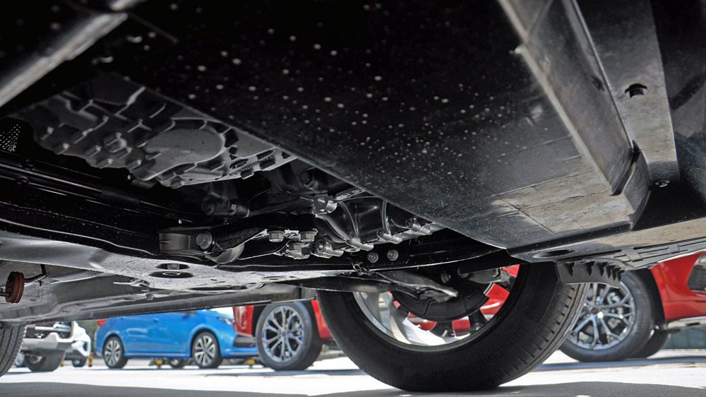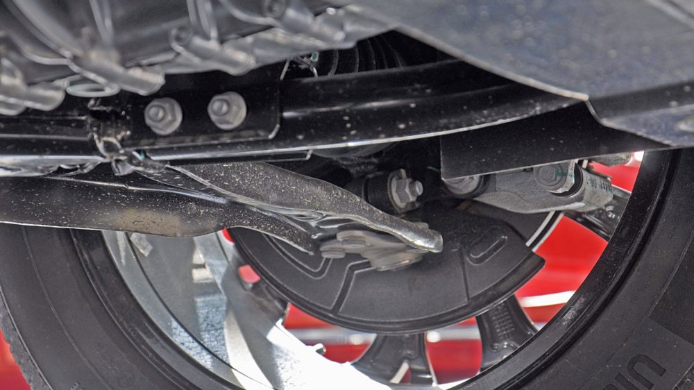 И передняя, и задняя подвески независимые, пружинные. А если лечь на пузо и поползать под машиной, то можно увидеть, что, например, шаровые опоры тут клёпаные. Это хорошо – их можно будет менять без замены рычагов в сборе. Зато приличной защиты днища снизу я не заметил – есть только пластиковые пыльники. Гонять по лесу на этой машине, наверное, не стоит. А если она будет с вариатором – тем более.