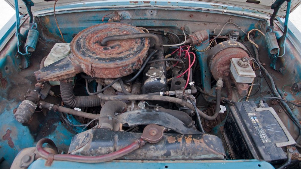 Итак, как я уже говорил, двигатель тут тот же, что и на 31029 — ЗМЗ-402. Это известный всем “волголюбам” четырёхцилиндровый агрегат объёмом 2,445 л, развивающий 100 л.с. Интересная особенность — штамп ГОН на вакуумном усилителе. Нет-нет, эту машину никто не угонял из Гаража Особого Назначения того, чьё имя нельзя называть. Просто так на ГАЗе в то время маркировали некоторые детали на опытных машинах.