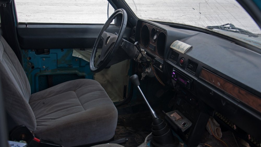 Если не крутить головой и смотреть прямо перед собой, то увидеть можно только 29-ю Волгу. Панель, органы управления — всё, как на обычной “барже”. Вот только боковые зеркала здесь больше. Независимо от того, какая сзади стоит надстройка, в задней стенке кабины есть окошко. Мы через него видим только изотермическую будку, так что на нашей машине толку от него нет. Что ж, будем как настоящие водители грузовика ориентироваться только по боковым зеркалам.