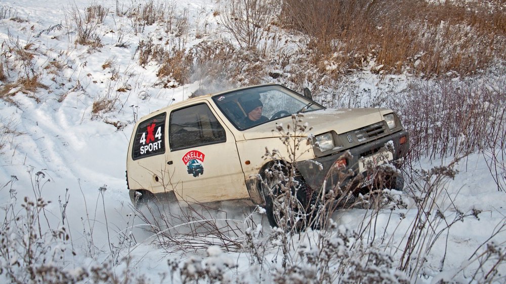 По глубокому снегу машина едет очень уверенно! В общем-то, обычная переднеприводная Ока там тоже чувствует себя неплохо — помогает небольшой вес, но Окелла, конечно, может намного больше. Всё-таки она не только полноприводная, но и стоит выше, и диаметр колёс у нее больше. По словам Андрея, в грязи она не уступает не только кроссоверам, но и настоящим внедорожникам. К тому же у неё есть дополнительное преимущество: её колея не попадает в колею более тяжёлых и крупных машин. Так что многие внедорожники смотрят на Океллу, как на лысого из Brazzers в его получасовых роликах: да ладно, такого не может быть! За себя обидно, но... может.