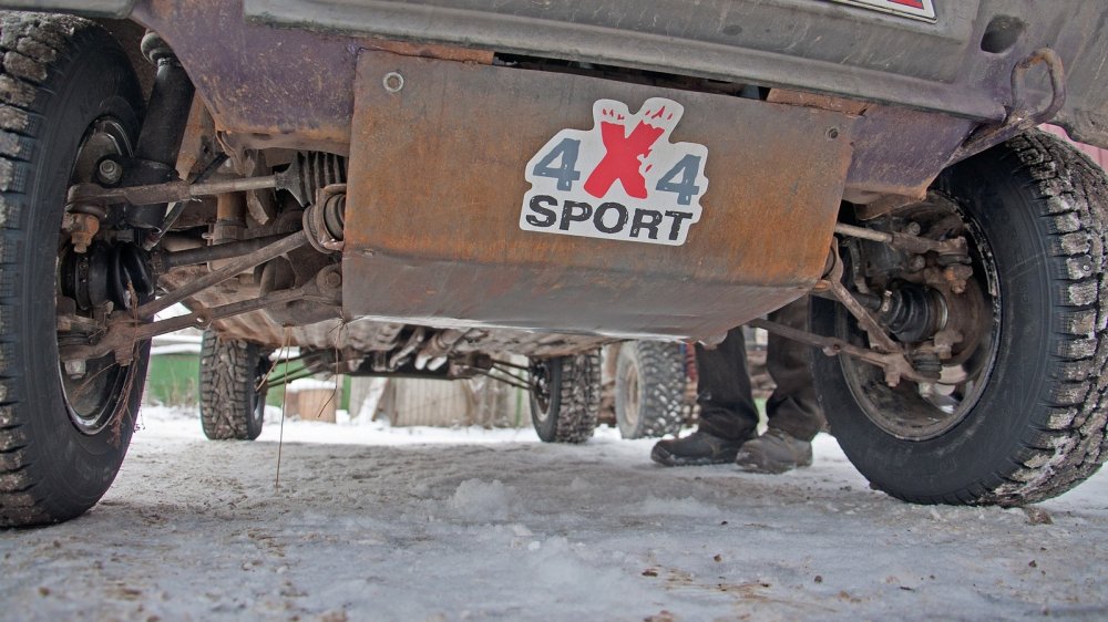 У машины получились сравнительно небольшие ходы подвесок, и её не слишком сложно вывесить диагонально. Поэтому тут не обошлось без межколёсных блокировок. Сзади дифференциал просто заварен, а вот спереди стоит самоблок “Вал-Рейсинг” — рулить с заваренным дифференциалом было бы сложно. Этого оказалось достаточно для вполне серьёзного бездорожья.