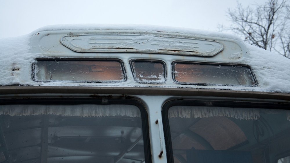 А вот “скворечник”, маршрутный указатель над лобовым стеклом, здесь совсем небольшой. Впрочем, и номера маршрутов у “пазиков” были обычно односложными.